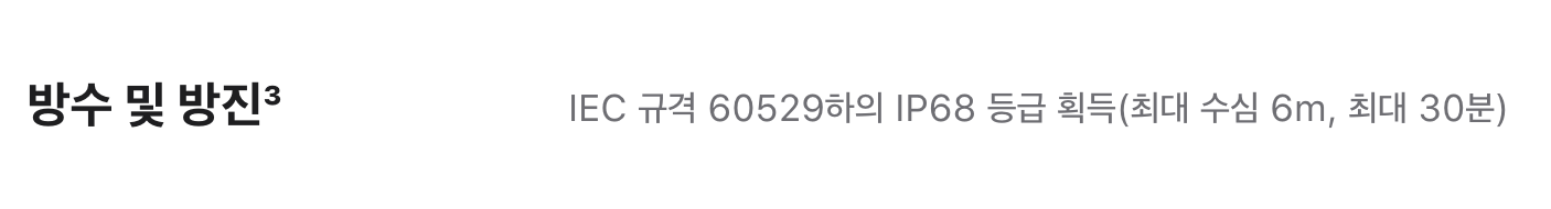 아이폰 XS 부터 지금까지는 IP68이 채택되고 있습니다.